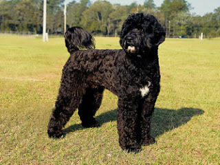The Portuguese Water dog is a medium sized muscular dog. Its feet is webbed which aids in swimming. It is animated, playful and loyal. It absolutely loves water.