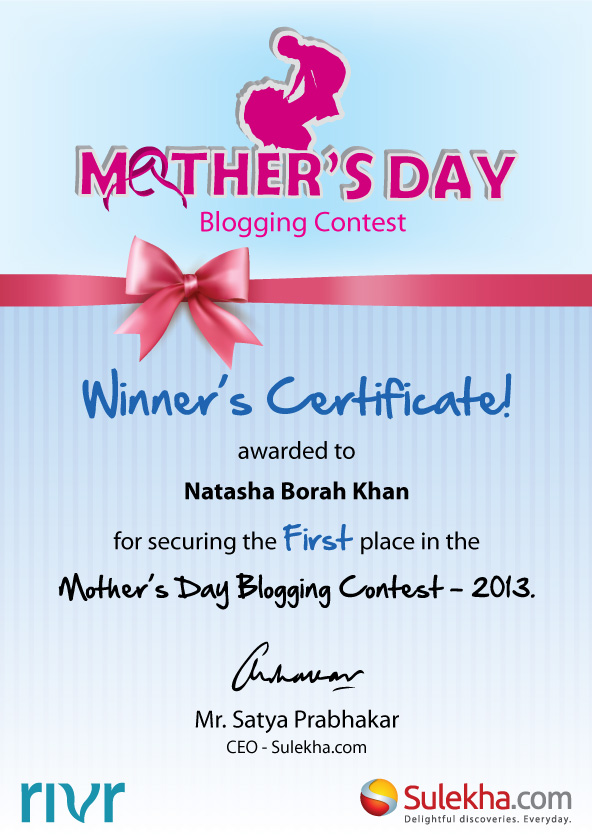 In the month of May 2013, Sulekha.com held a number of blogging contests, one of which was on the eve of Mother’s Day. I entered into this particular contest and blogged on the topic “What makes a happy mother” (http://homeneeds.sulekha.com/what-makes-a-happy-mother_602849_blog)
