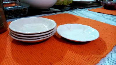| Aita (my maternal grandma) got these plates from Bombay in the late 1980s. We had our dessert in these during our visit earlier this month. |