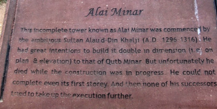 Then there is the unfinished Alai Minar. It was an ambitious project and its story is given in the picture below.