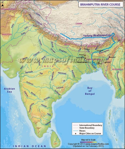 Well, I have not seen Brahmaputra in its Yarlong Tsangpo form, but I have seen it and experienced it at different points across Assam. I have crossed it a number of times via the Saraighat bridge in Guwahati and Kolia Bhomora bridge in the Sonitpur district. I have picnicked on its banks several times. I have lived near it. And I have experienced a flood cause by it as a child. In Assam, the river is more plain as it has no falls or rapids. But it creates havoc every year during the rains. You can read more on that in my post “Rain Bane“.This mighty river has such a remarkable journey. Starting as Yarlung Tsangpo, becoming Siang, transforming into Brahmaputra, mingling to become Jamuna and finally merging into the Bay of Bengal. In India, all river names are feminine except Brahmaputra (it means son of Brahma). Hence, it is often referred to as the only male river of India.
