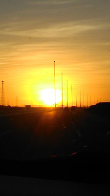 Then there was stretch of rocky hills. They were bare except some sparse grass. It was dusk when were crossing them, and the setting red sun played hide and seek with them. It was beautiful.