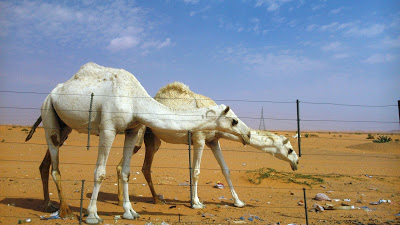 I had never rode through a desert before and so I was pretty excited. I was fascinated by the camels. I had always known that camels are of brown colour. I was amazed when I saw black and white camels out there. On both sides of the highway, camels grazed with their herders nearby. It were those areas where there were sparse vegetation. One time, we stopped by the road and there were camels near the fence. I went down to the fence to look at them closely. They were the white ones. Two of them came over to me. May be they hoped to get some treats from me. They lunged their long necks over the wired fence close to me head. I wanted to reach out to them with my hand. But I feared that my hand would go into the mouth! I managed to click a few candid pictures. The poor camels were disappointed about the treats. Dad called me to get bananas for them from the car. By the time I was back with the bananas, they had moved on.