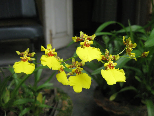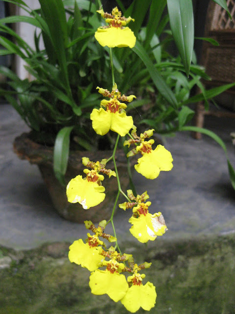 Oncidium flexuosum are ground orchids. Deta had grown them in a flower pot as you can see in the above picture. If you look closer, the flower looks like a dancing doll or lady and hence the name. They are bright golden yellow in colour and look so pretty.