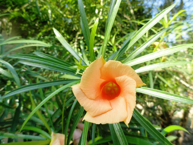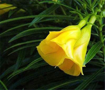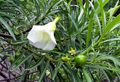 Mexican Oleander is a common short flowering tree grown in gardens and roadsides. It is an ornamental plant and colour varieties are yellow, white and peach. I think the yellow one is the most common, since it is one I see everywhere. Back home, we have the peach-coloured variety. The plant is a toxic one and the flower or the fruit should not be consumed.
