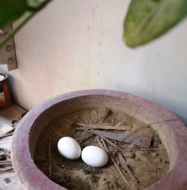 I showed my husband articles which said that pigeons are carriers of diseases, especially respiratory diseases. Their droppings and feathers are toxic. Finally, we started chasing away the pigeon couple (don’t know though whether it is the same couple every time or different ones!), throwing away their nesting material every time they make an attempt and moving their successful eggs. We placed plastic spikes on their likely roosting and nesting nooks and corners. But the damage had already been done. They are not afraid of my husband at all and don’t even bother to fly away when he is in the balcony. They honour me with a little fear as I was still the one doing the dirty work of destroying their nesting attempts. But their nuisance has now finally motivated by husband to join hands with me openly and keeping a watch on their attempts.